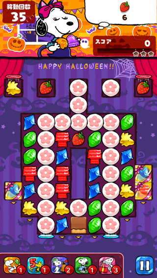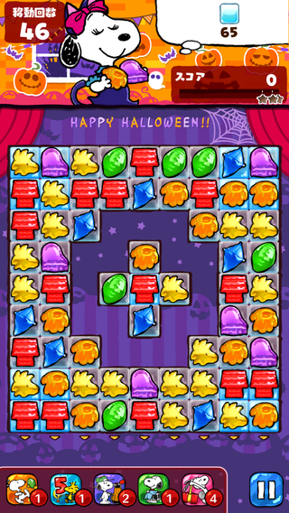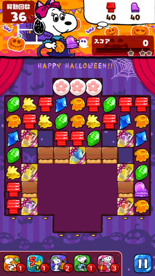 ストライプ×ポッピングやレインボーが巡らないとクリアが困難なステージ。あと一歩までいけたらアイテム使った方が良いかも。
